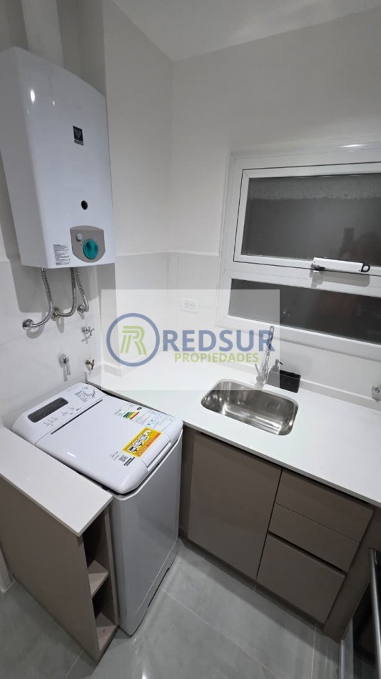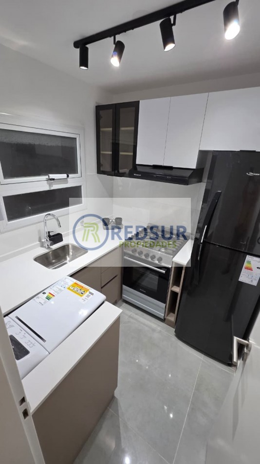 Cocina equipada con lavarropas automático, purificador spar, cocina acero inoxidable