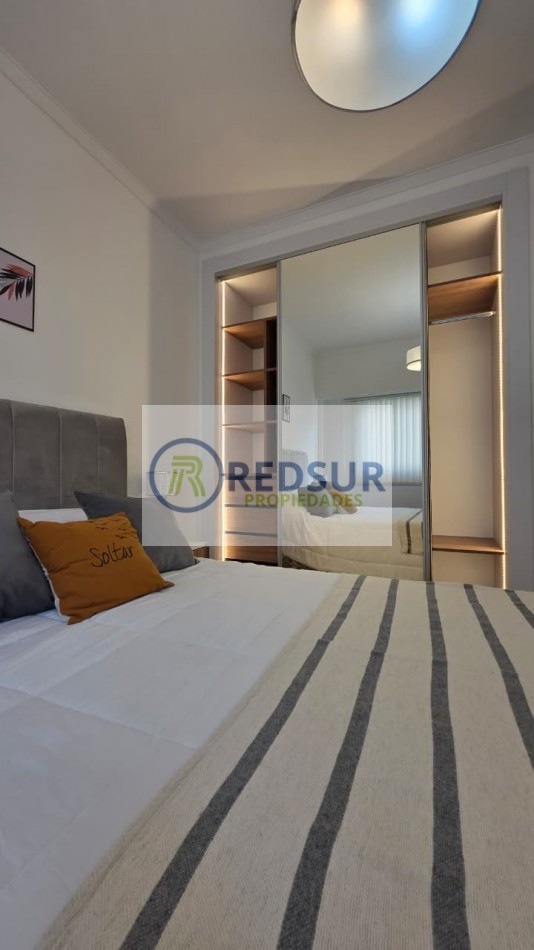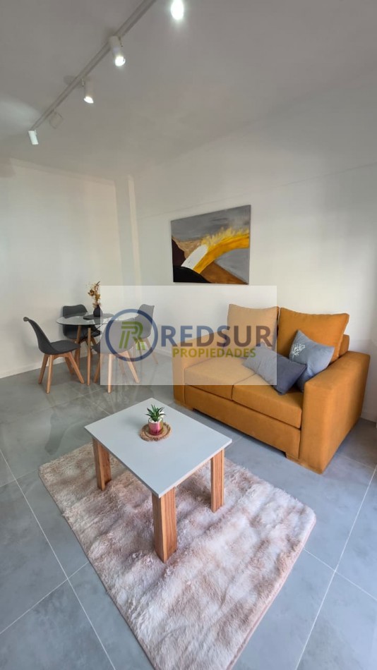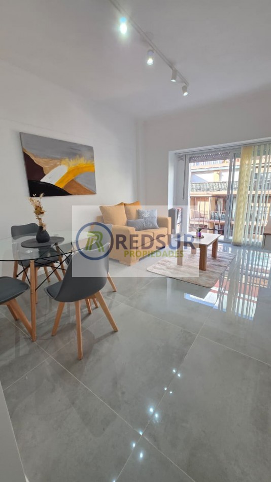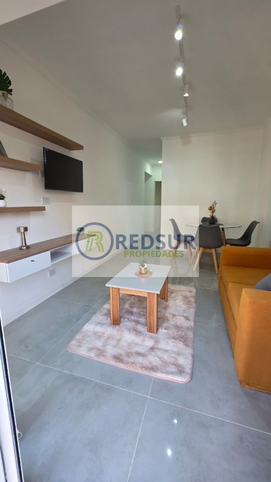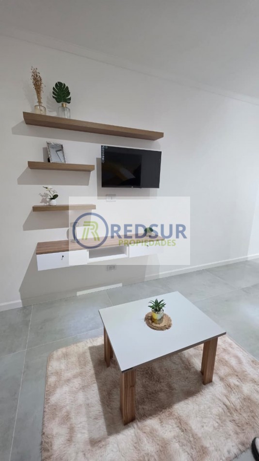 Living – comedor totalmente amoblado con tv y toma de USB para carga de celular