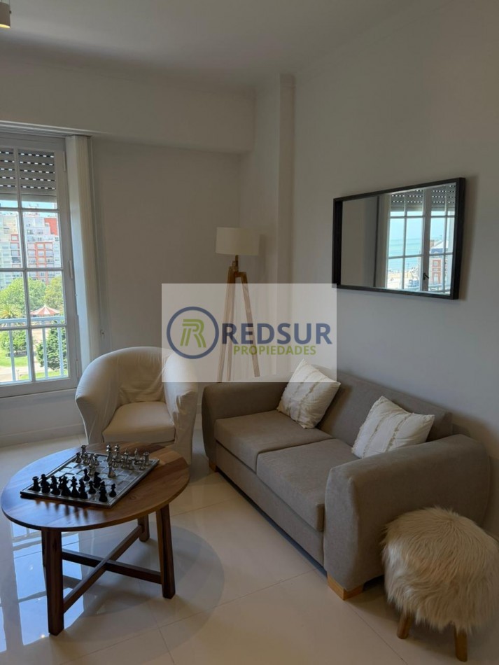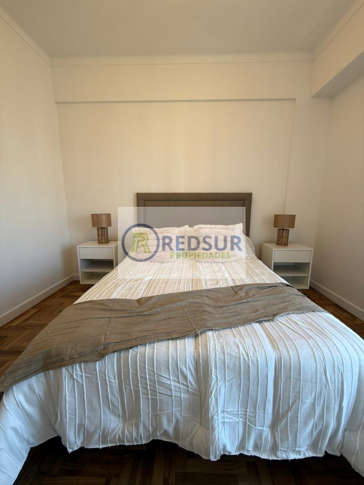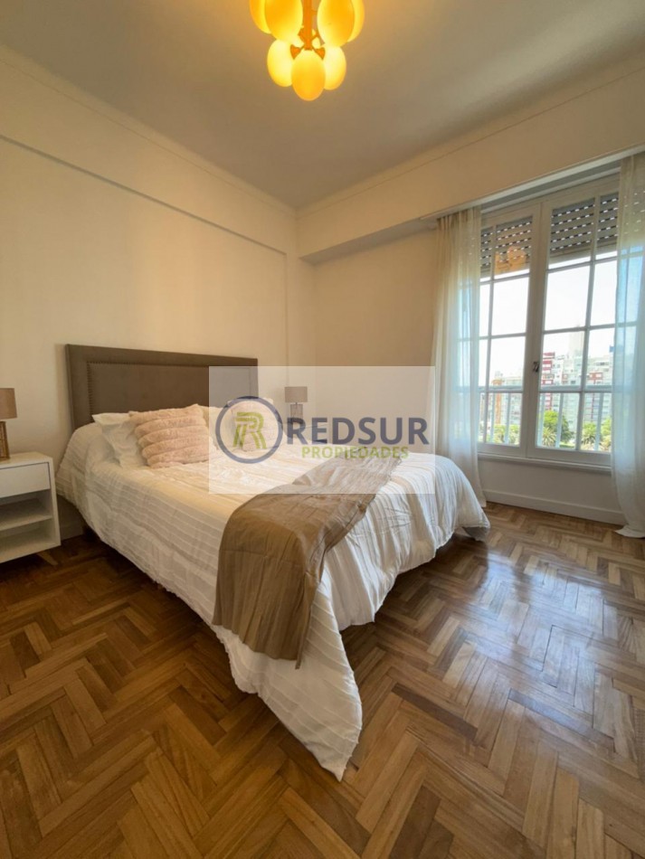 Dormitorio con pisos parquet pulido, lustrado y plastificado, con amplio placard de 6 hojas. Con sommier de 2 plazas, respaldo de cama y mesas de luz, vista al mar