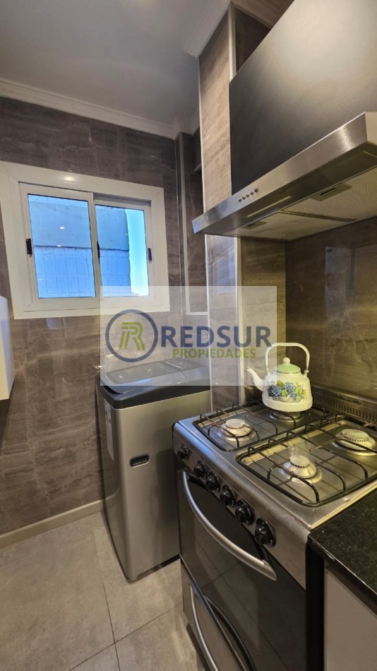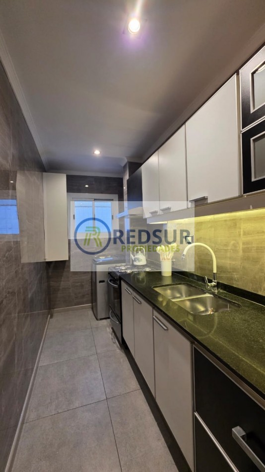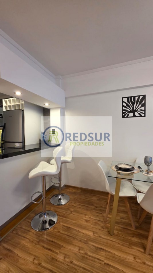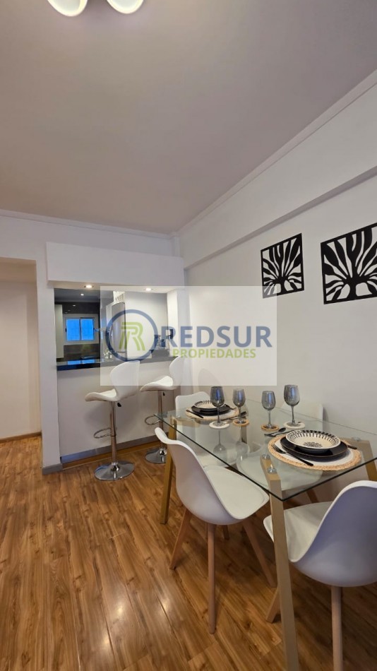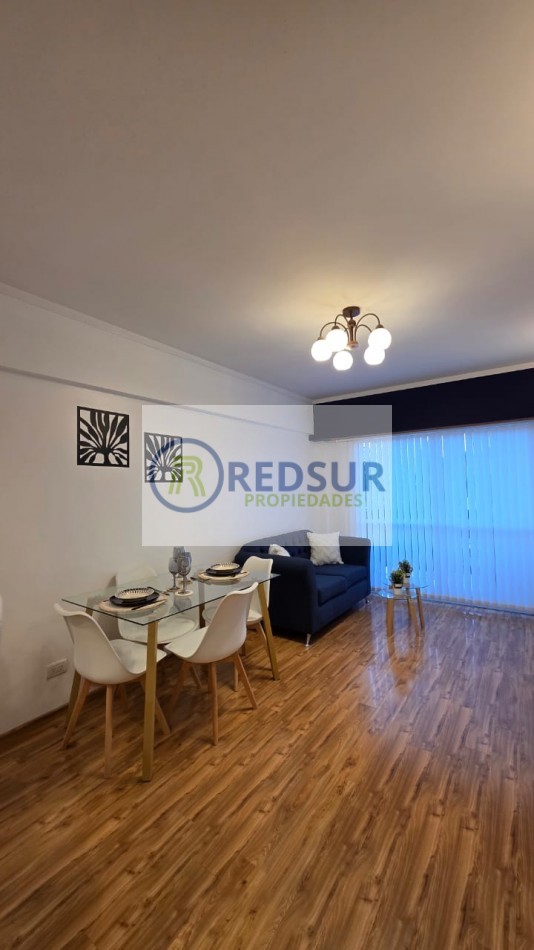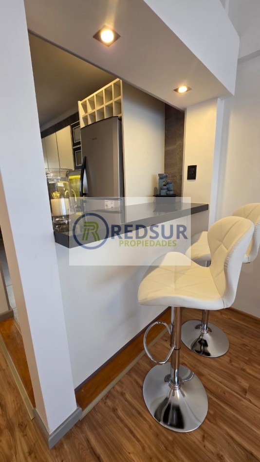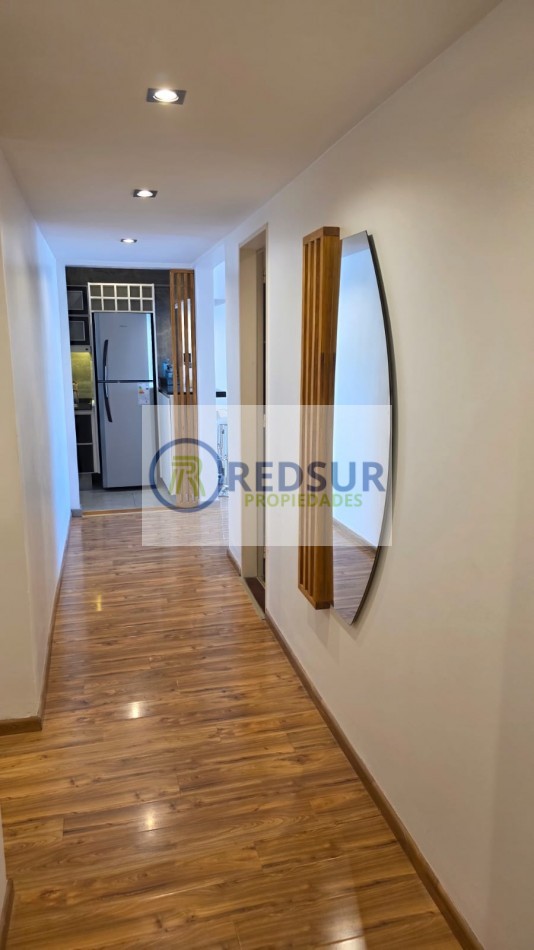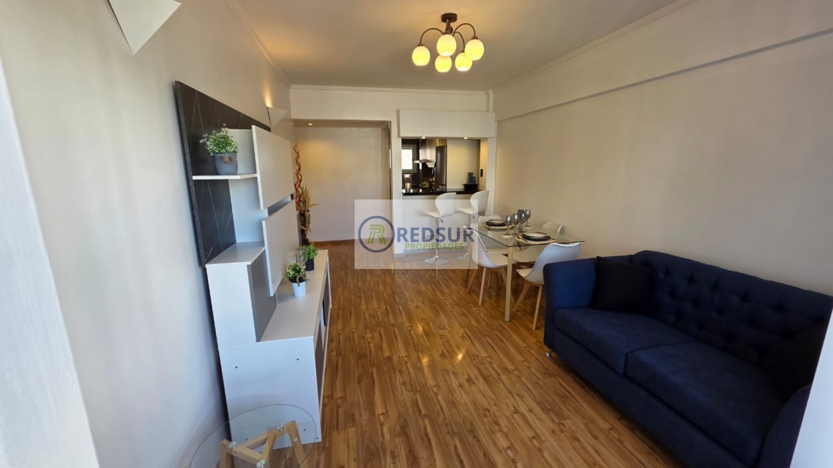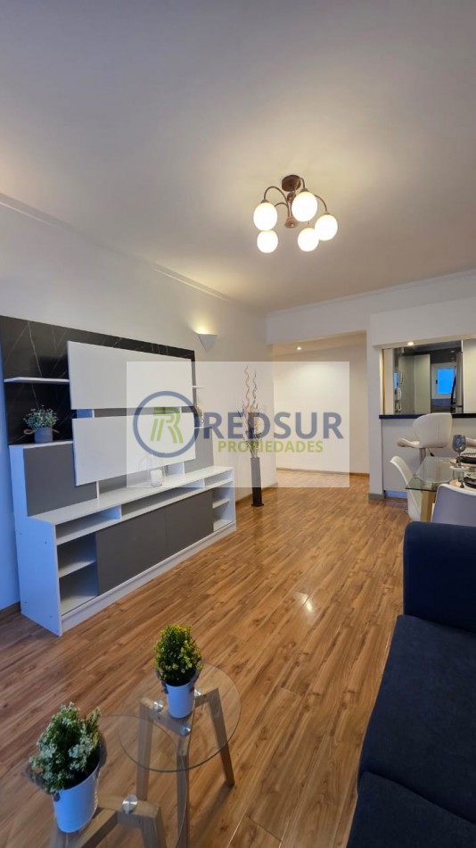 CON AMPLIO LIVING COMEDOR DE 6 X 3 MTS. CON SALIDA AL BALCÓN , CORTINADO GIRABANDAS